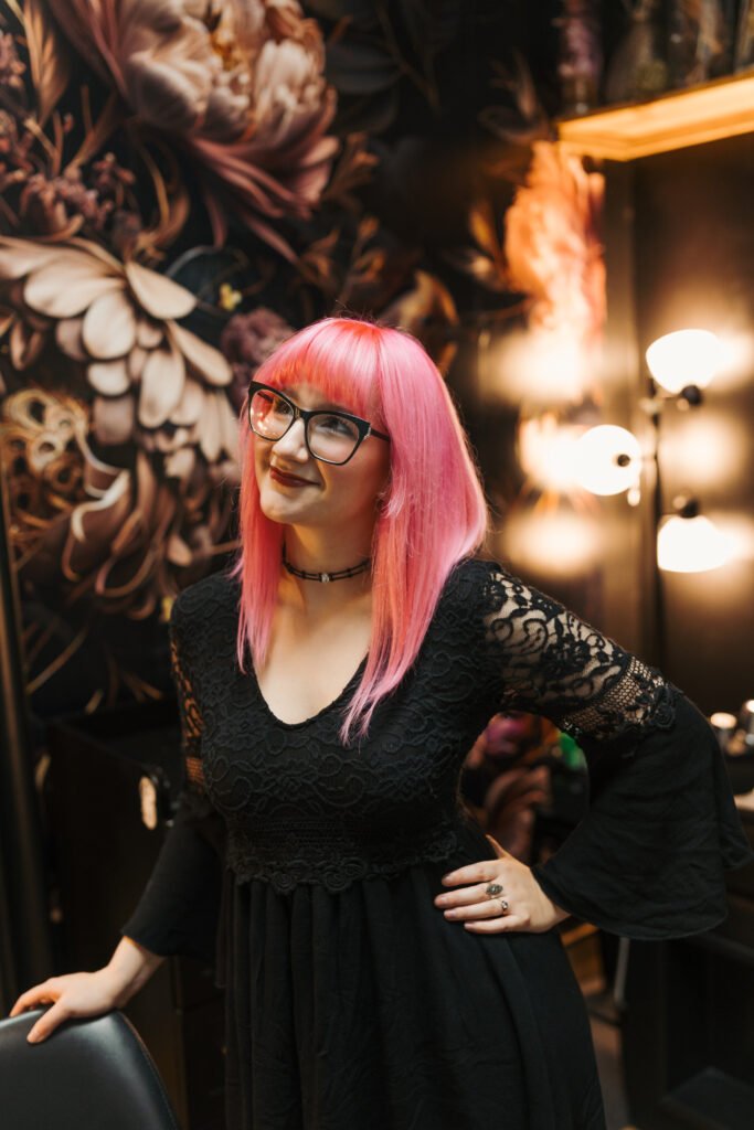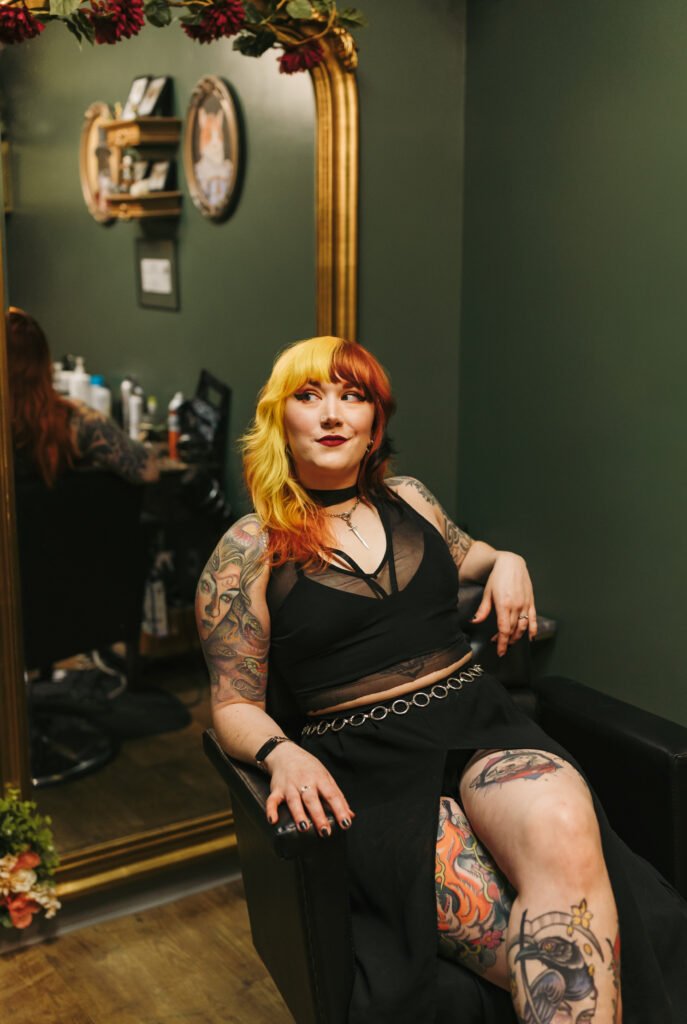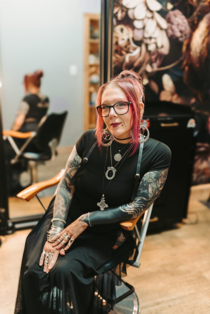 Outside the salon, she loves video games, anime, horror, painting, going to the gym—and she’s always down for a good renaissance faire.